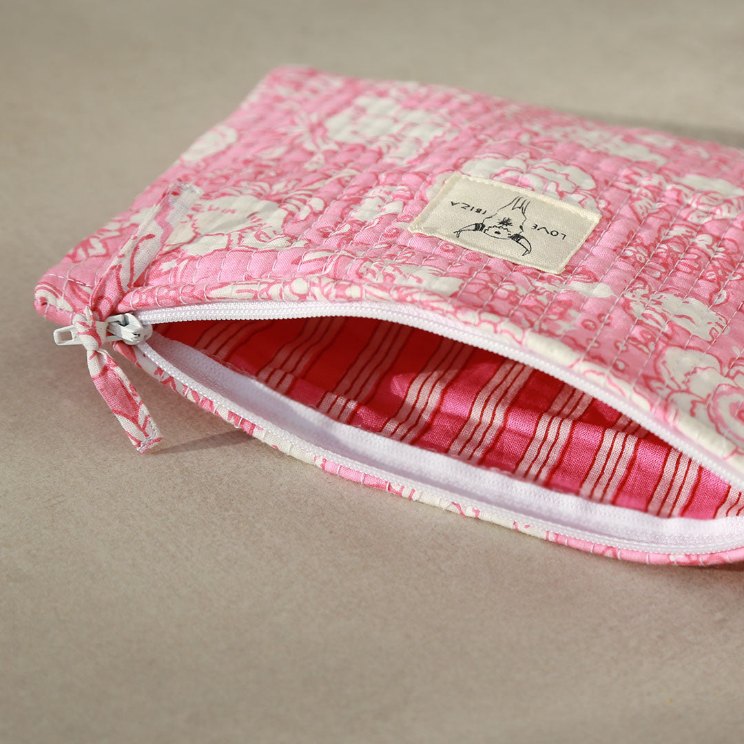 Kleurrijke blockprint make-up pouch. Super handig om te gebruiken als make-up tasje maar ook om wat kleinere spullen in te doen wanneer je een grote tas gebruikt.