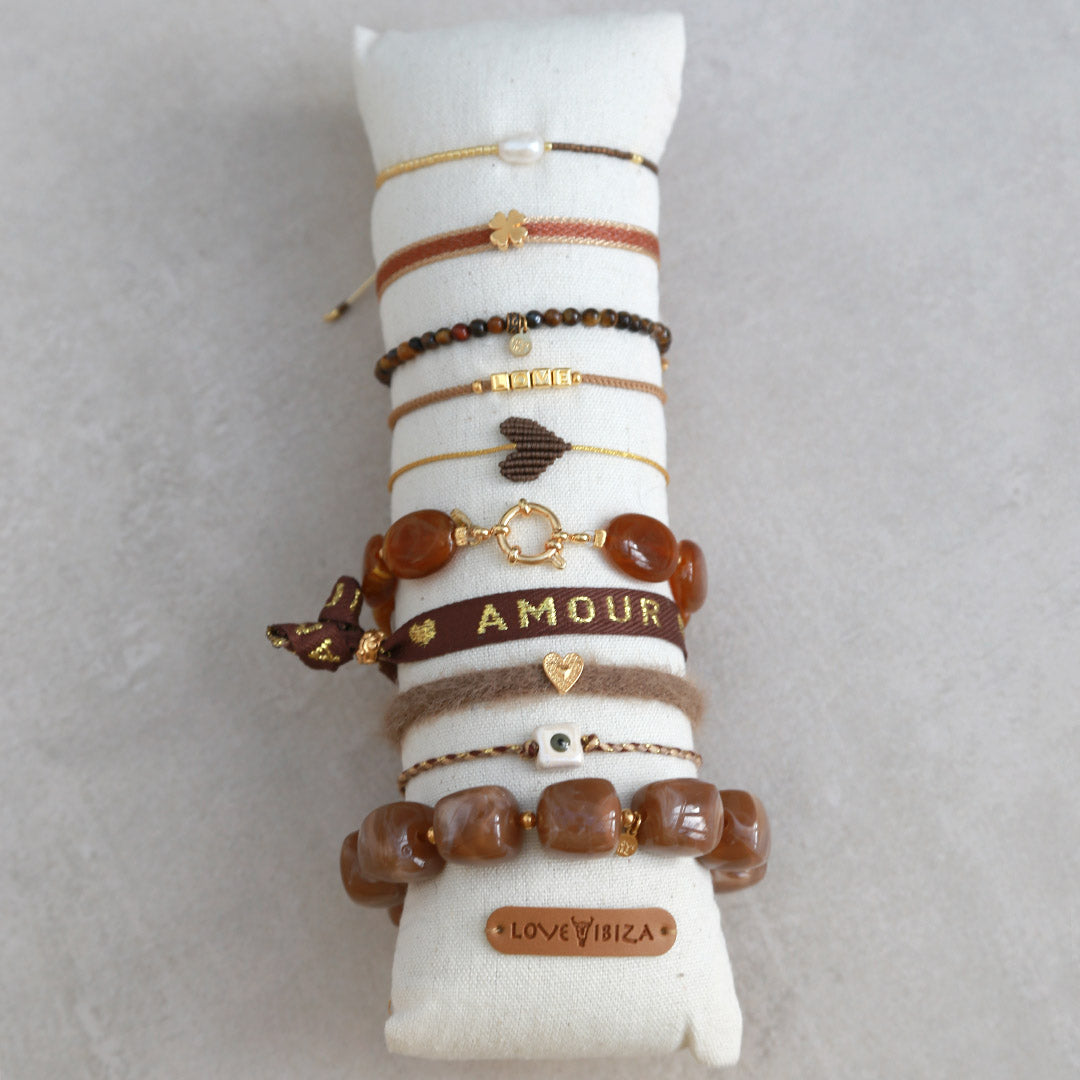 Display kussentje met de 12 'evil eye keeps you safe' armbandjes