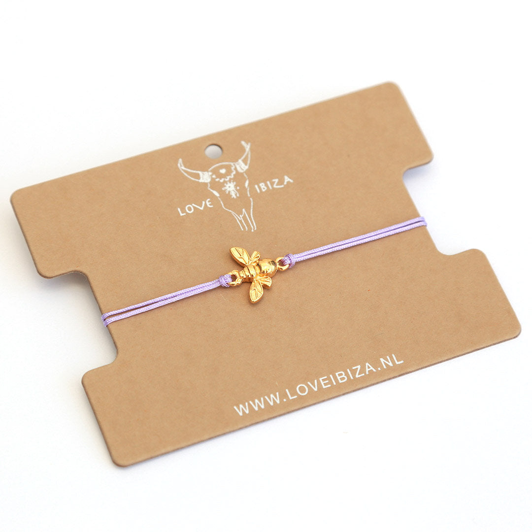 Mooi armbandje van lilakleurig koord en een gouden bijen bedeltje.