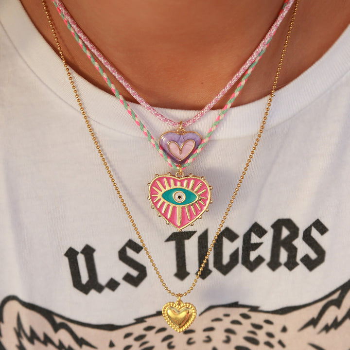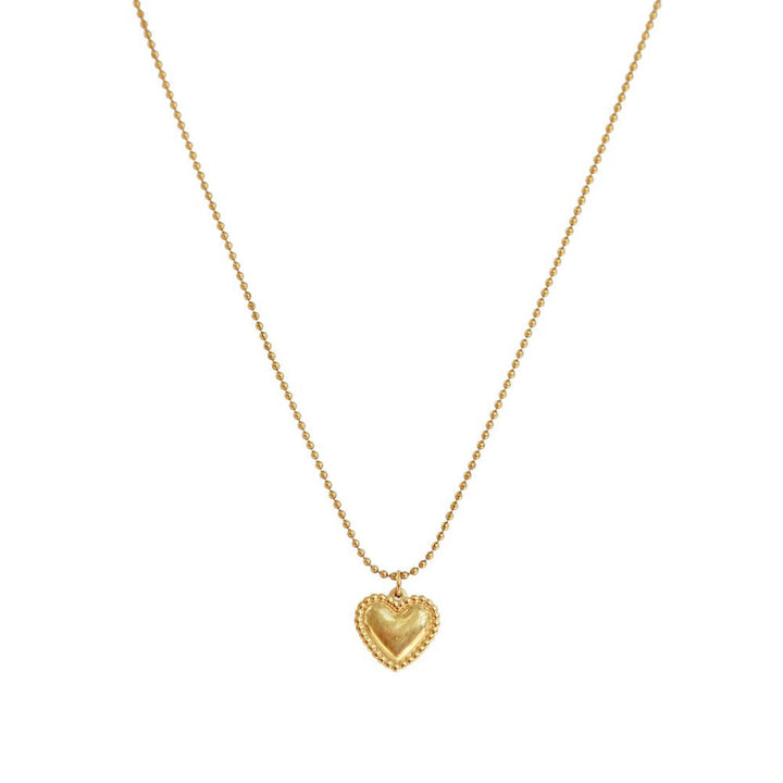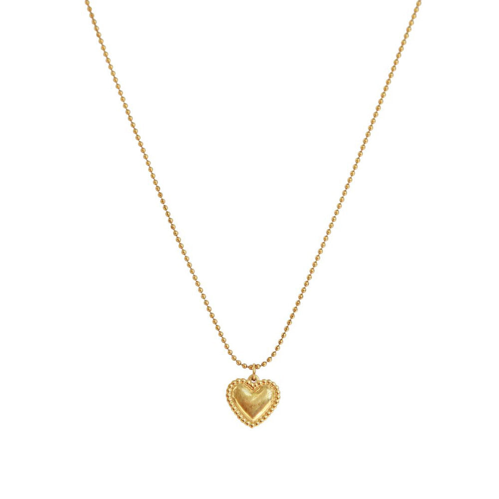 Mooie gouden ketting met een hartjes bedel met stipjes patroon aan de zijden. Het kettinkje wordt geleverd met een leuk kaartje!
