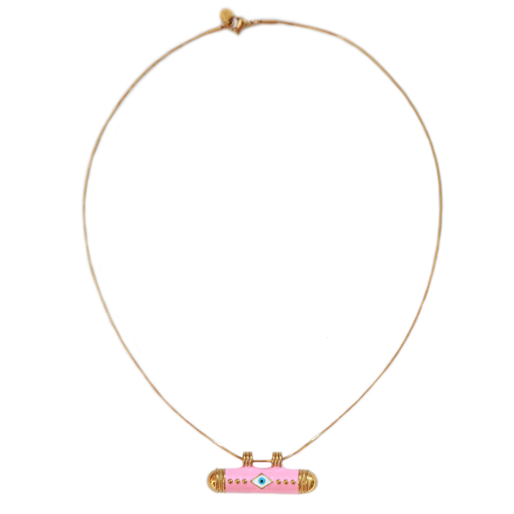 Ketting evil eye pink bar
