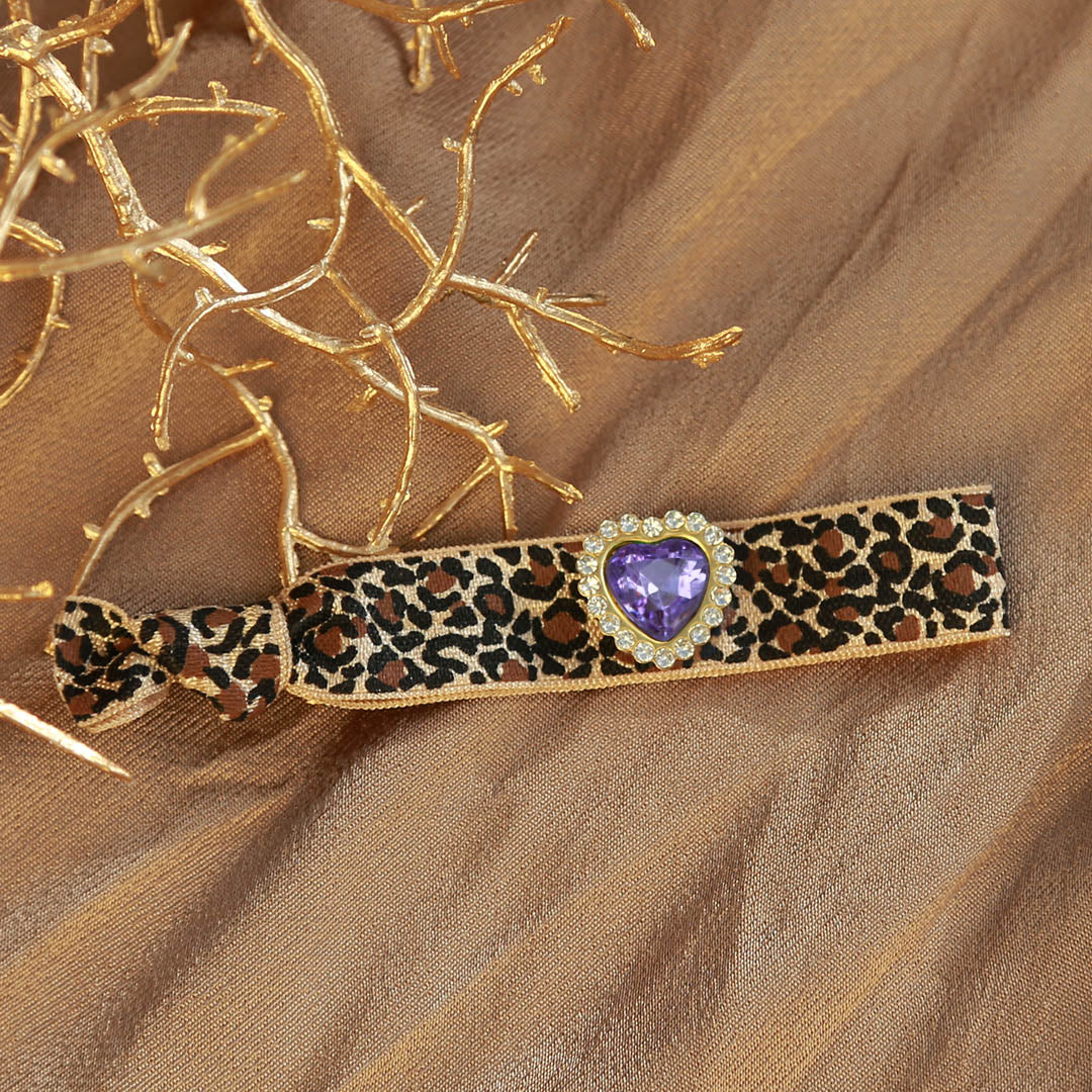 Leuk luipaard armbandje met een strass hartjes bedel in een paarse kleur.