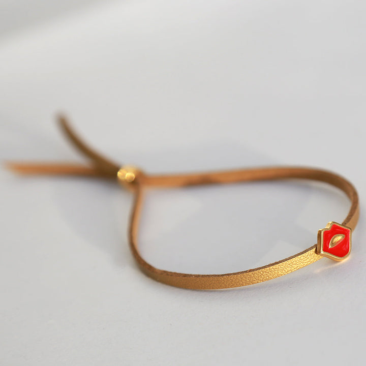 Gouden armbandje met een schattig kusjes bedel.