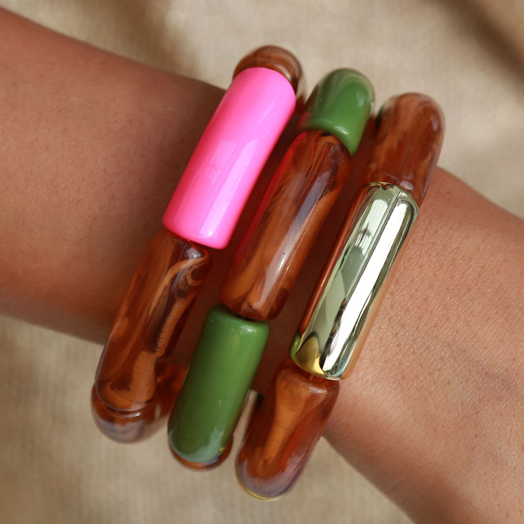 Schickes rundes Armband aus braunen und olivfarbenen Perlen.