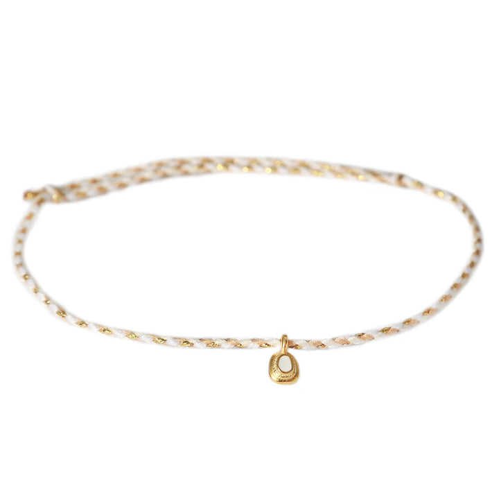 Wunderschönes Fußkettchen aus gedrehter Kordel in Weiß/Gold mit goldenem Anhänger.