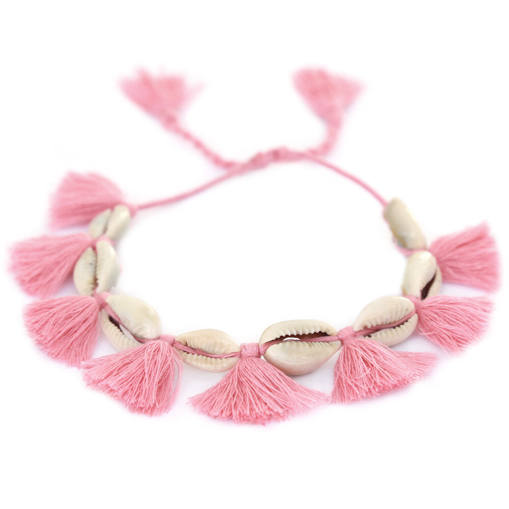 Verspieltes Fußkettchen mit Muscheln im Wechsel mit Quasten.