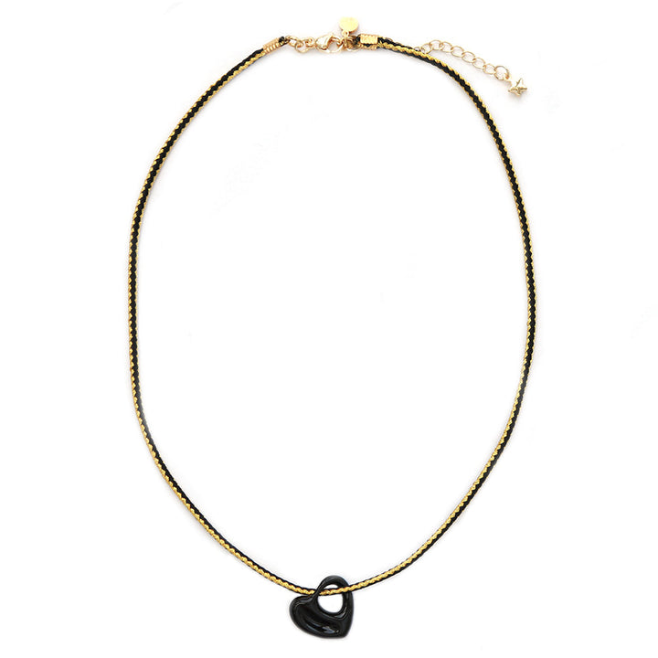Nice necklace of black with a gold lurex thread and a black heart charm!