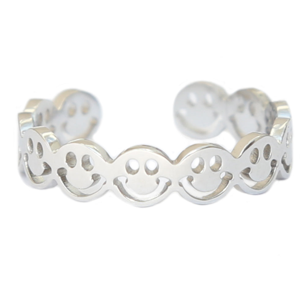 Nice silver ring in the shape of lots of smileys. The ring is adjustable!