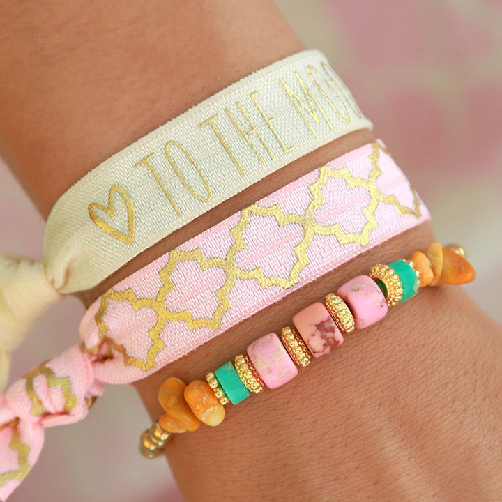 Magnifique bracelet de perles fait main composé de différents aciers inoxydables et de perles colorées.