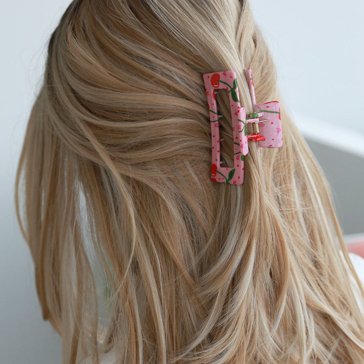 Jolie barrette à cheveux droite avec un imprimé cerises.