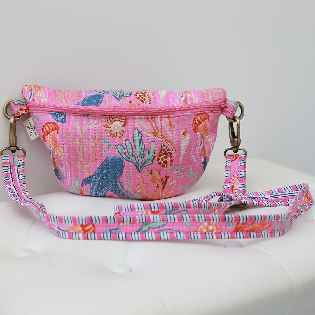 Leuk heuptasje in een geweldig handgemaakte blockprint. Het heuptasje is voorzien van matchende rits sluiting en heeft een verstelbaar hengsel.