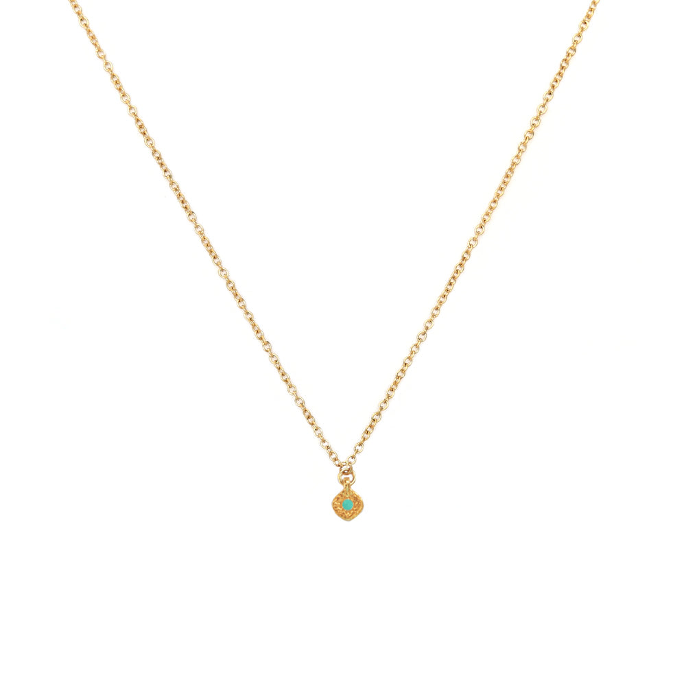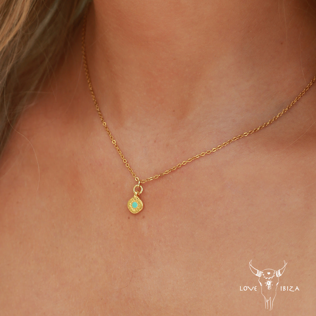 Mooie fijne ketting met een goud met turquoise amulet bedeltje.