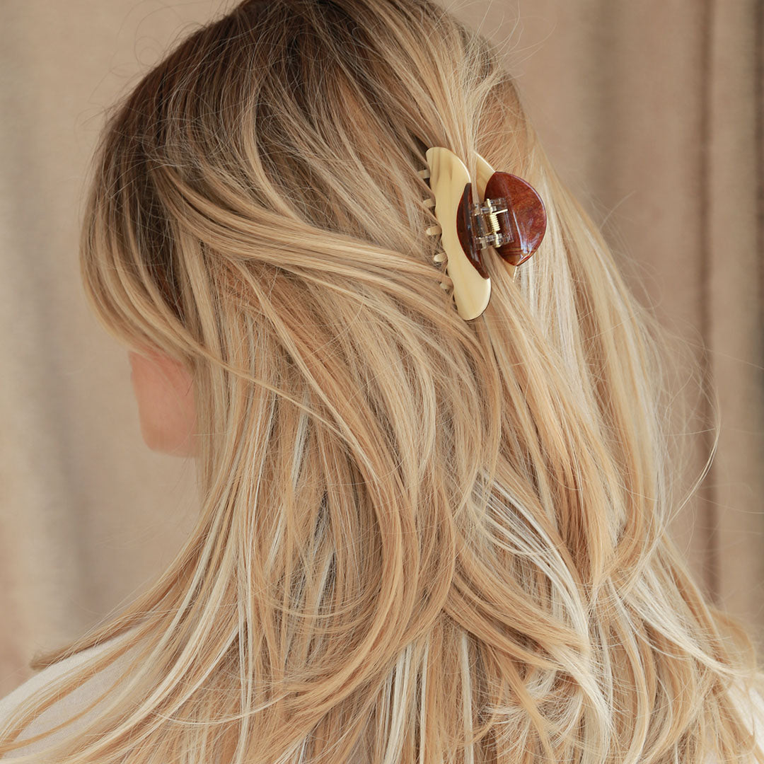 Leuke half ronde haarklem in een bruin en creme kleurtje.
