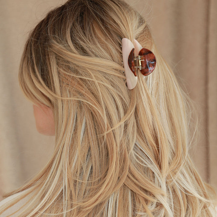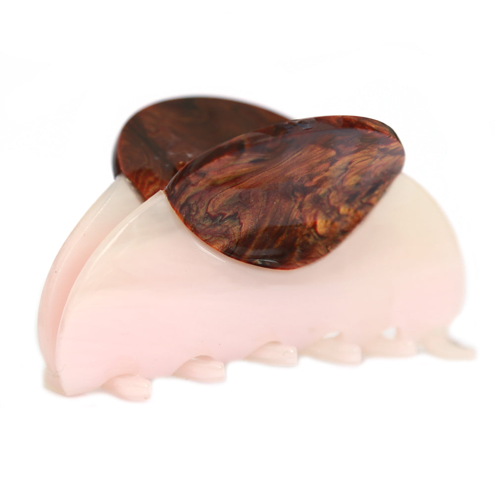 Leuke half ronde haarklem in een bruin en roze kleurtje.