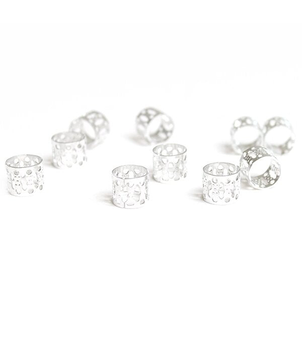 Vrolijk je haarvlecht op met deze leuke zilveren haar beads. De beads zijn gemakkelijk open te buigen en om de banen van een vlecht te klemmen.